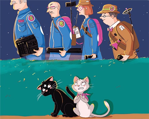 Burbullas de calma serena habla de Casiopea, una gata doméstica, poco acostumbrada a las aventuras. No puede imaginar que será la primera gata de Agarimo en ver un alien, tampoco que lo acogerá en su casa ni el desastre que se va a formar.