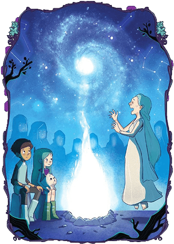 Cuenta nueve estrellas cuenta la historia de Quepi, Udai y su abuelo Acasi. Son una familia singular del planeta Dot, en la Galaxia Oma. Sobreviven precariamente en un planeta cuya belleza es sinónimo de habitabilidad y supervivencia. Quepi es una niña dotada de un don muy peculiar que le permite comunicarse con la naturaleza, por esta razón su abuelo le obliga a cumplir Tres Normas Inquebrantables para mantenerse a salvo.